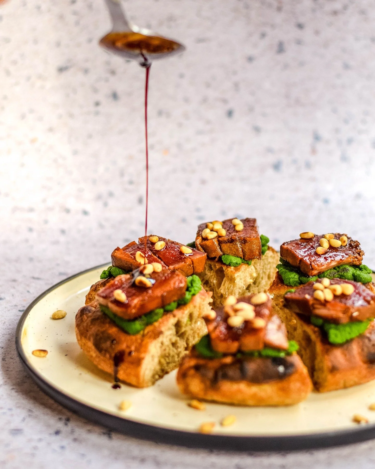 La nostra versió del padellino és una oda a la textura. Una massa d’alta hidratació, fermentada a temperatura ambient i cuita primer al vapor i després al forn. El resultat és una base esponjosa per dins, amb crosta cruixent i un interior suau que contrasta amb el farcit. La cocció en safata ens permet jugar amb formats més petits i sabor concentrat, ideals per a plats més creatius o tastos compartits.